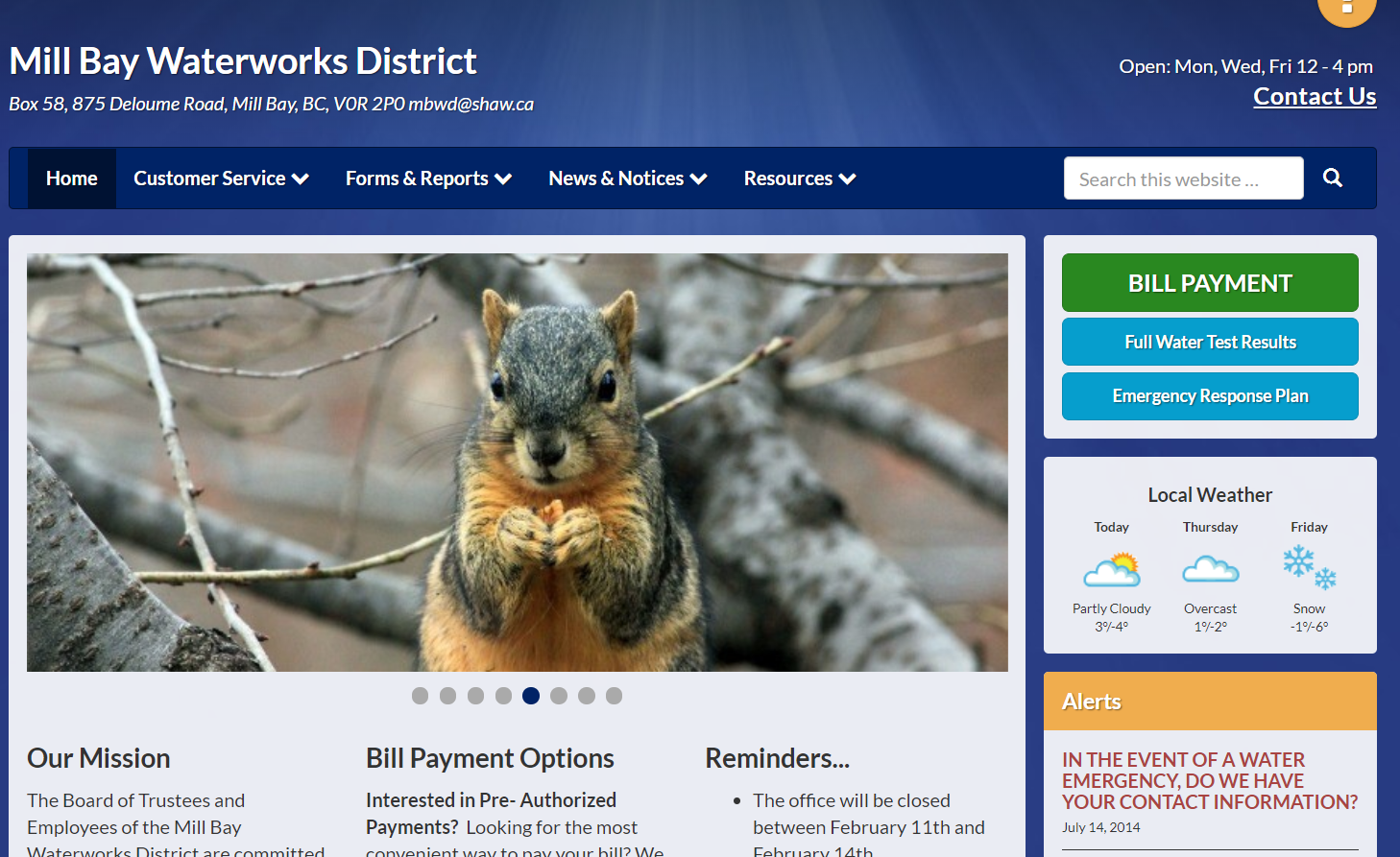 Check out these examples of water websites built by water system in British Columbia. They were put together by the water system administrator or an office staff member.